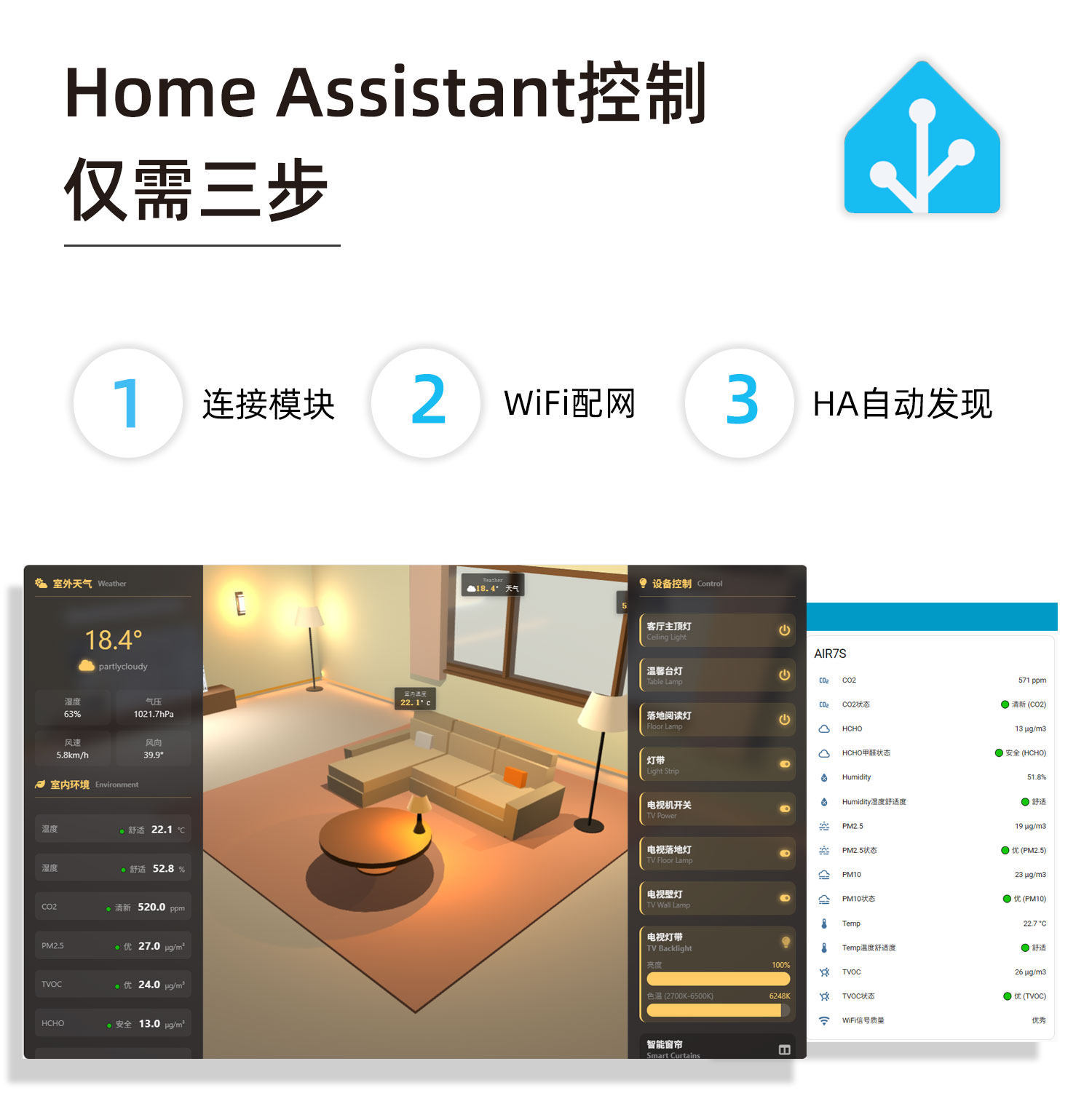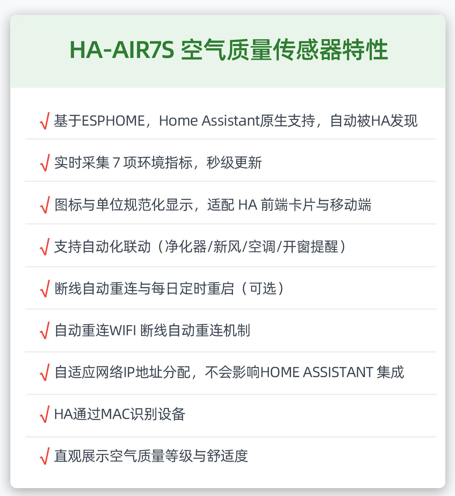 02HomeAssistant原生自发现传感器 CO2/甲醛/TVOC/PM2.5 智能 HA-AIR7S |